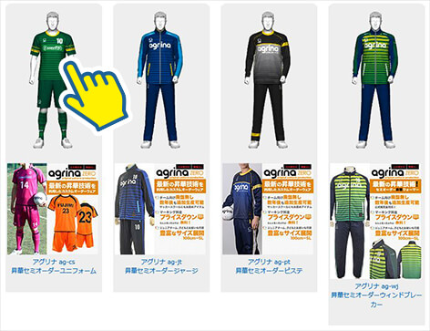 シャツ、ジャージ、ピステなど、希望アイテムを選択