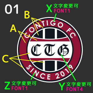 上記エンブレムで使用するフォントの種類になります。各エンブレムの使用フォントは変えることはできません。
